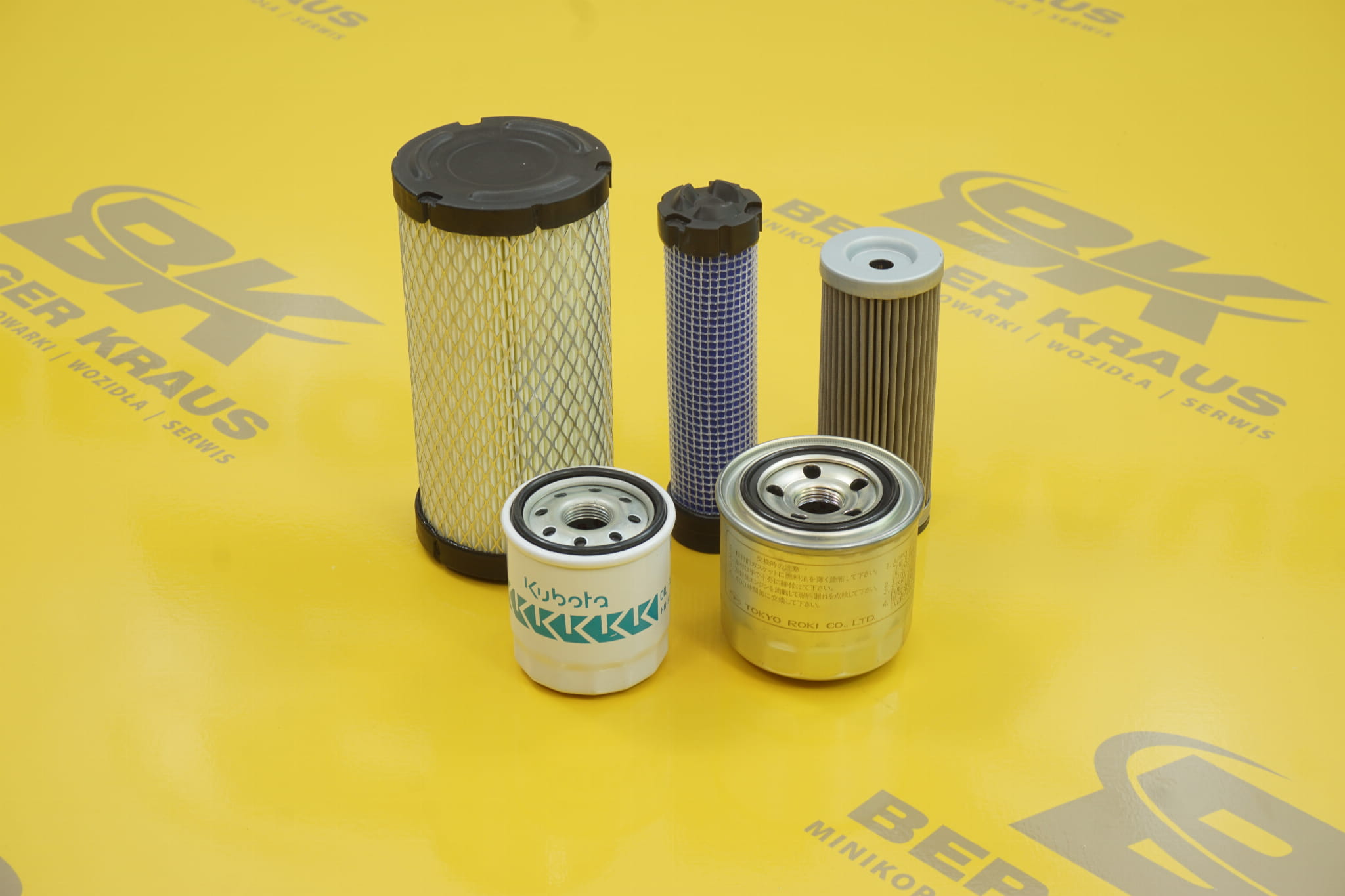 Zestaw 4 filtrów do koparek BK1200A, BK1200AS, BK1200ASR, BK1200KS z silnikiem Kubota(D722)